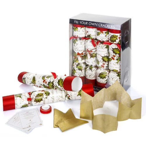 Este producto es una caja que contiene un juego deocho (8) crackers navideños listos para que los rellenescon tus propios regalos, sorpresas, dulces o mensajes personalizados. Es la opción perfecta para añadir un toque personal y único a tus celebraciones navideñas, permitiéndote seleccionar obsequios específicos para tus invitados o seres queridos.