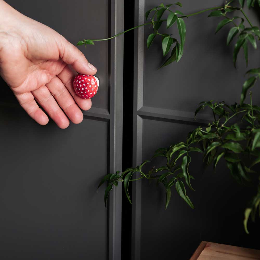 Da un toque de fantasía y naturaleza a tus muebles con este encantador tirador en forma de seta roja. Hecho a mano con un acabado artesanal, su diseño inspirado en el clásico hongo del bosque (rojo con puntos blancos) lo convierte en un detalle decorativo original y divertido. Ideal para cajoneras, armarios o muebles infantiles, aportando un estilo alegre y rústico.