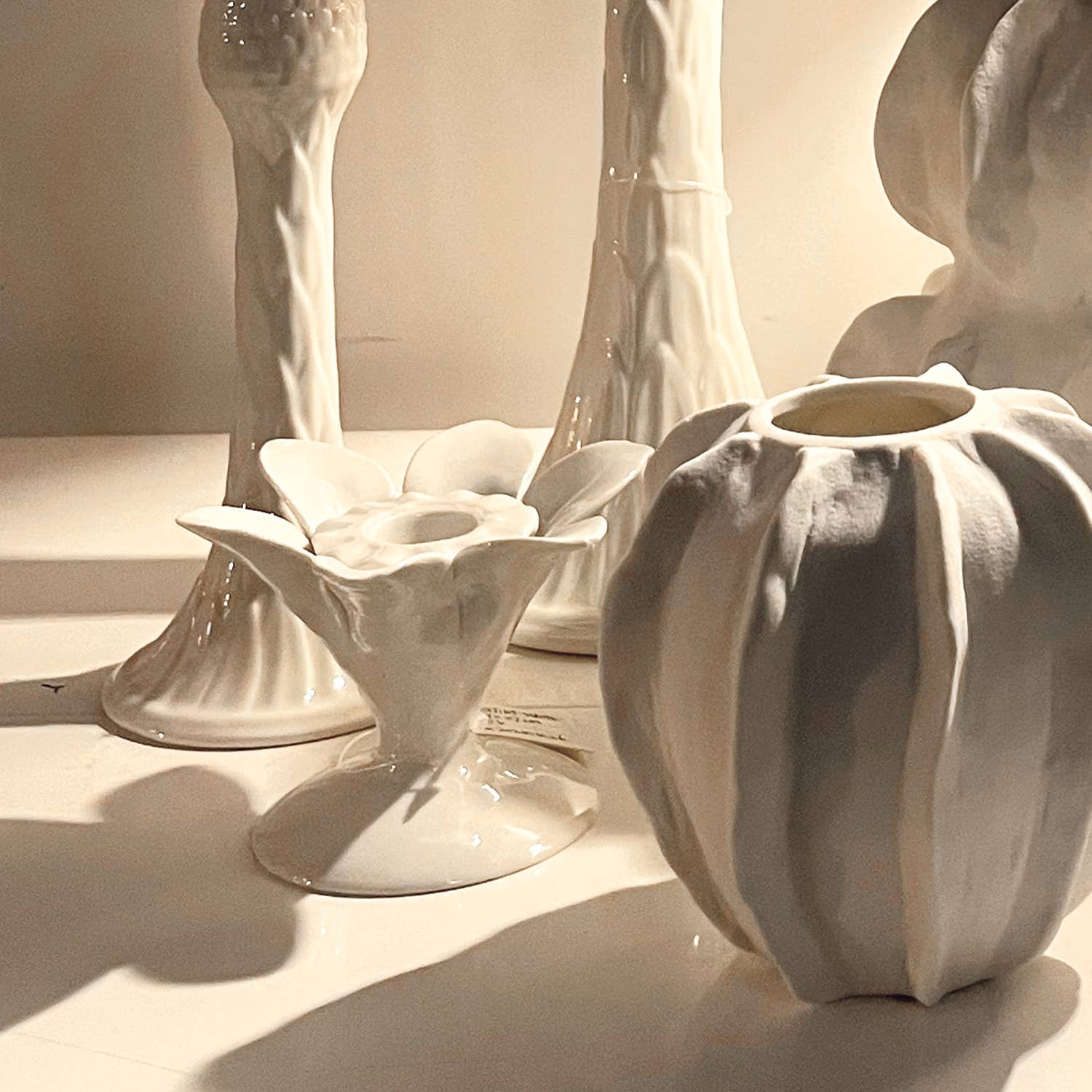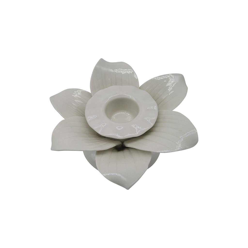 Portavelas de cerámica blanco con forma de flor – Decoración elegante