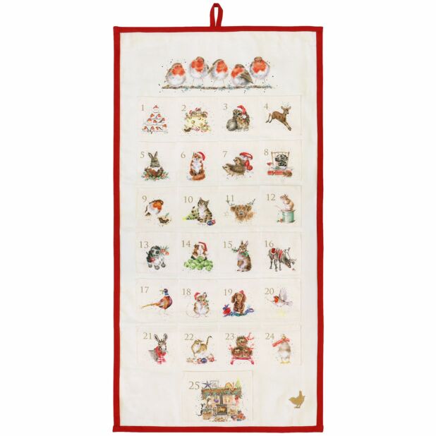 Con un práctico asa para colgar, un petirrojo bordado y un dowel interior que mantiene su forma, este maravilloso calendario puede reutilizarse año tras año.
