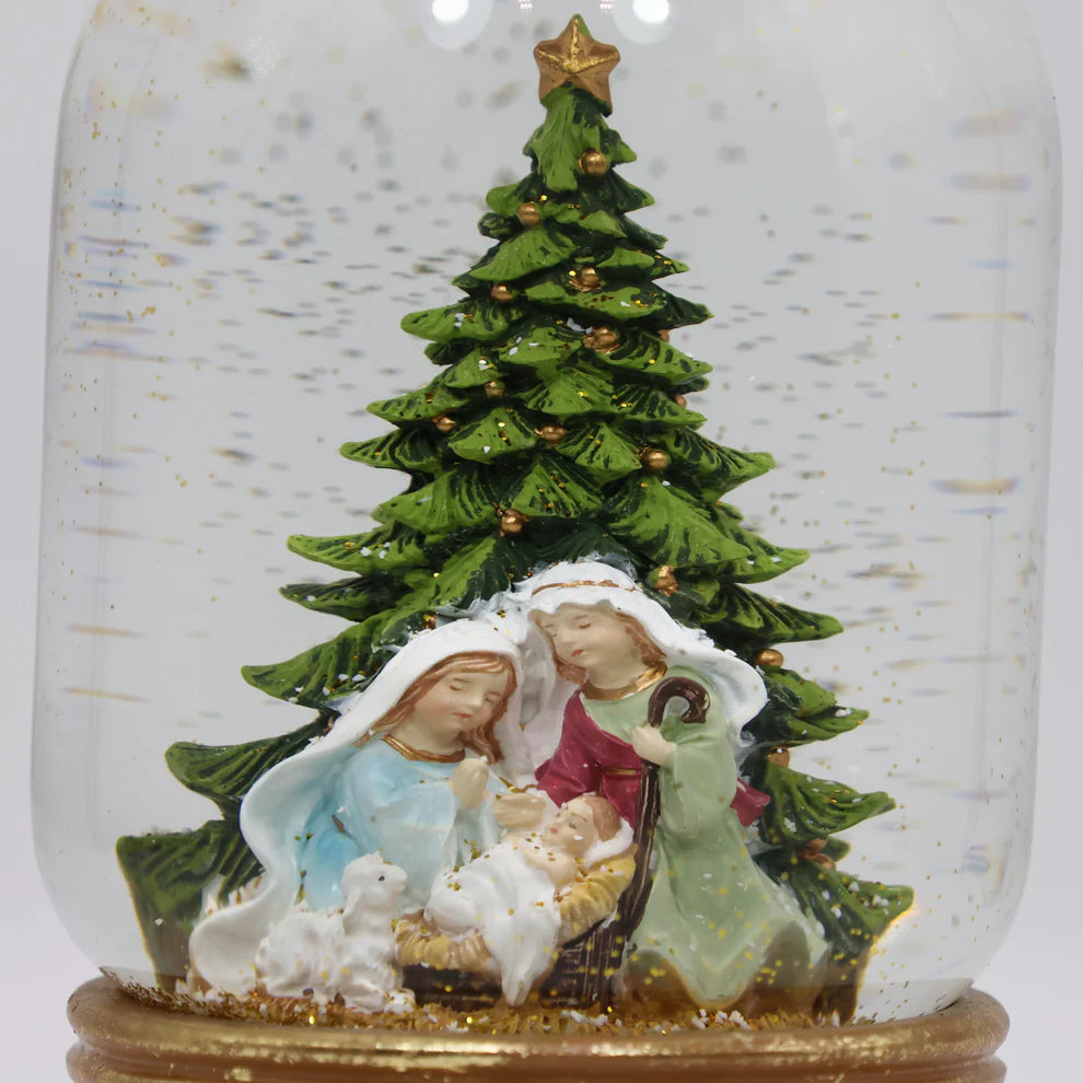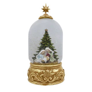 Este carillón musical de bola de nieve está finamente elaborado en resina, diseñado para evocar la serenidad y el encanto atemporal de la Navidad.