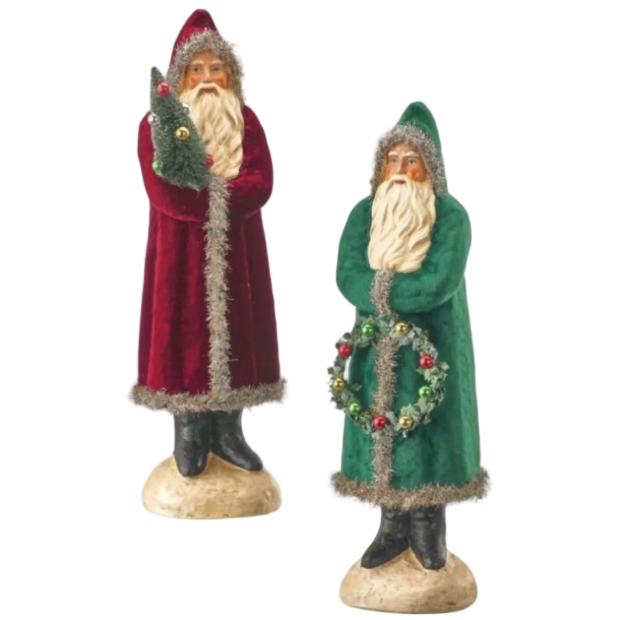 Decora tu hogar con encanto clásico gracias a este set de dos figuras Vintage Santa, elaboradas en piedra sintética (PStone) y diseñadas con un estilo tradicional que evoca la Navidad de épocas pasadas.