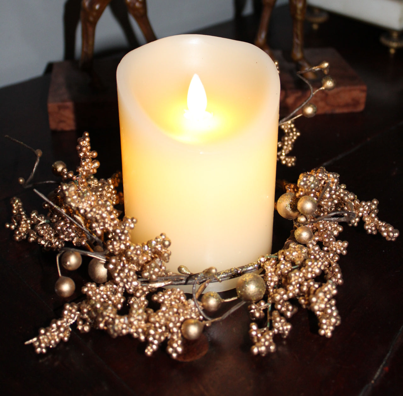 Anillo decorativo dorado para vela mediana – centro de mesa navideño elegante