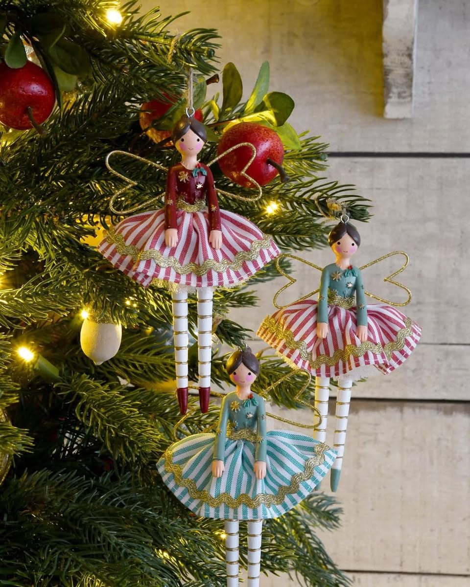 Añade un toque mágico y encantador a tu decoración navideña con estas hadas colgantes a rayas, disponibles en tres diseños diferentes. Cada hada está cuidadosamente elaborada en resina y pintada en vibrantes tonos rojo, verde y blanco, creando una combinación festiva perfecta para el árbol, una guirnalda o cualquier rincón del hogar.