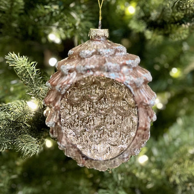 Aporta un toque cálido y brillante a tu decoración navideña con esta impresionante piña decorativa fabricada en vidrio y adornada con purpurina. Su diseño incorpora un hueco interior ideal para colocar una vela de té, creando una luz suave y acogedora que realza cualquier espacio.