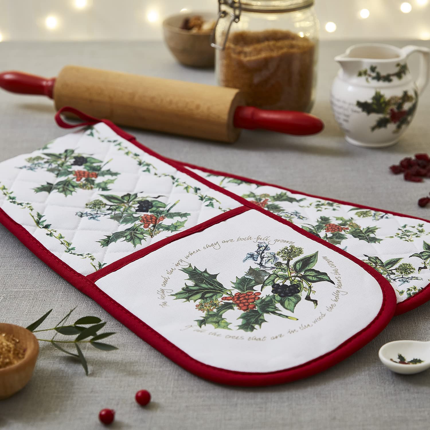 Este guante de cocina doble presenta el maravilloso estampado "El Acebo y la Hiedra" (The Holly and the Ivy) en ricos rojos y verdes. Te permite llevar con orgullo tus platos navideños a la mesa de Navidad sin comprometer el estilo de la temporada.