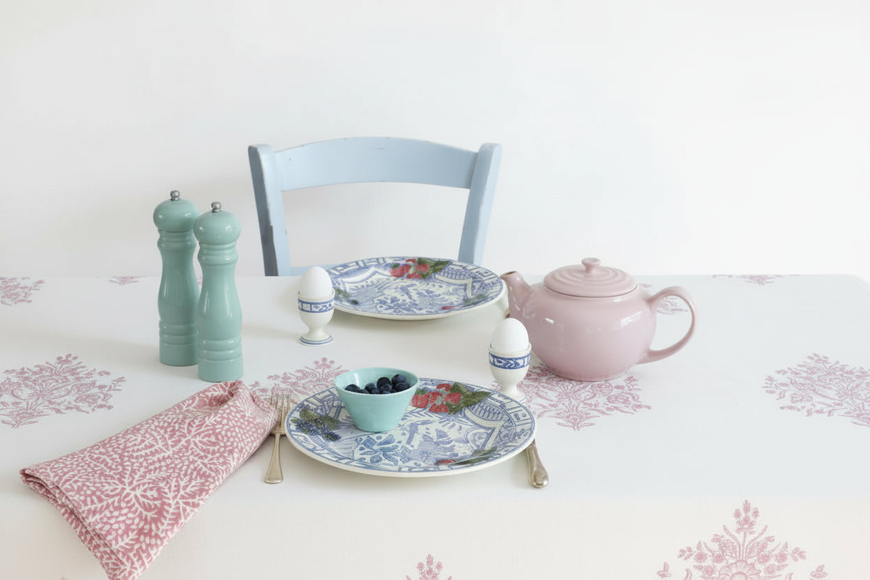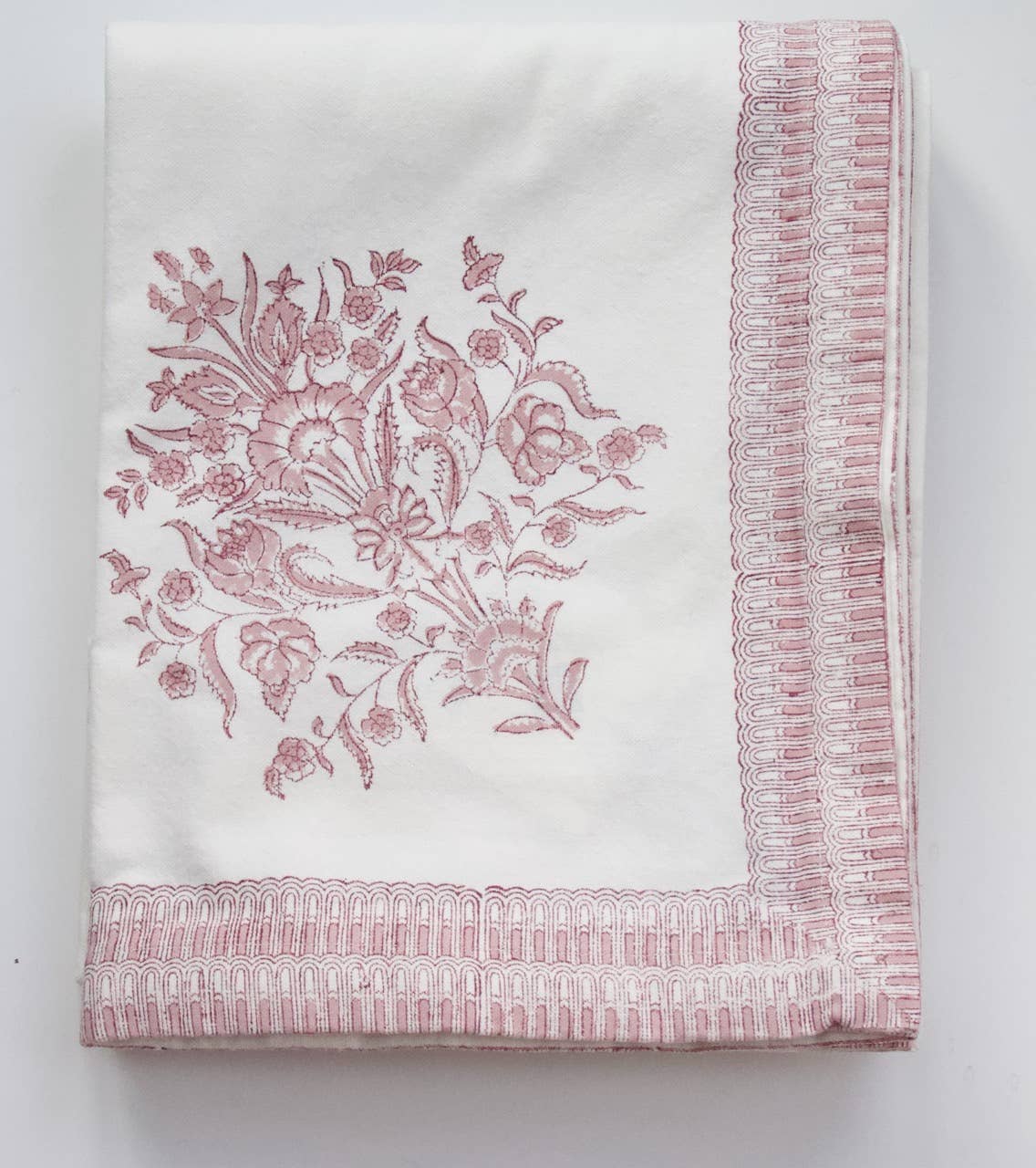 Este mantel artesanal está estampado a mano con la técnica tradicional de block print, lo que hace que cada pieza sea única. Confeccionado en algodón 100 % de alta calidad y mayor grosor, ofrece una textura más resistente y lujosa que otros manteles estampados con bloque convencionales.