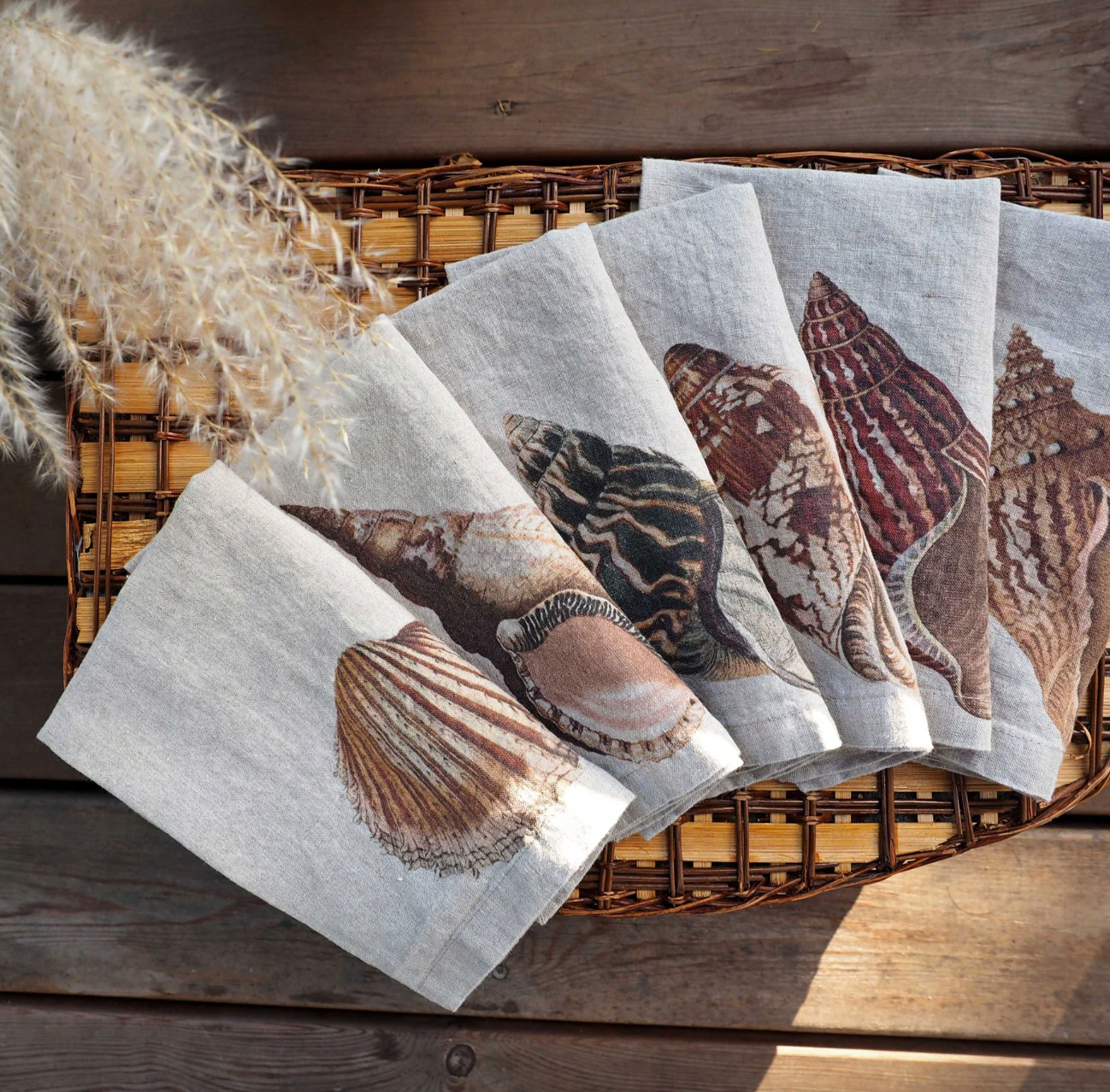 El juego de servilletas incluye 6 diseños diferentes de frutos del bosque en alegres tonos sobre fondo blanco. Hechas en lino lavado de alta calidad.